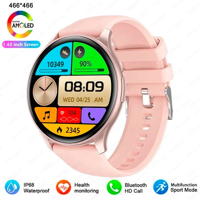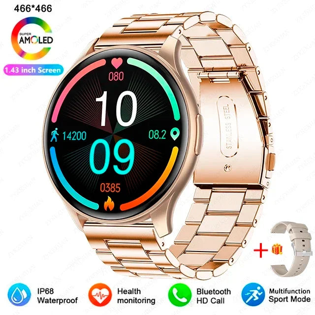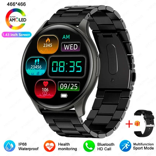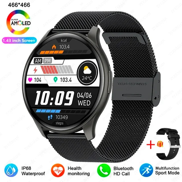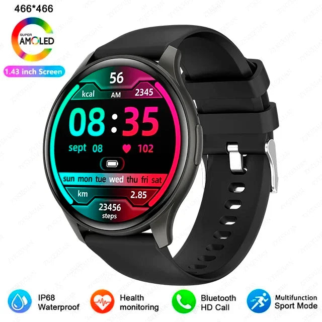 • Display : 1,43 Zoll AMOLED, Auflösung 466 x 466 • Kompatibilität : Bluetooth-Anruf • Akku : Langlebig • Material : Hochwertige, langlebige Materialien • Design : Modern, elegant und funktional